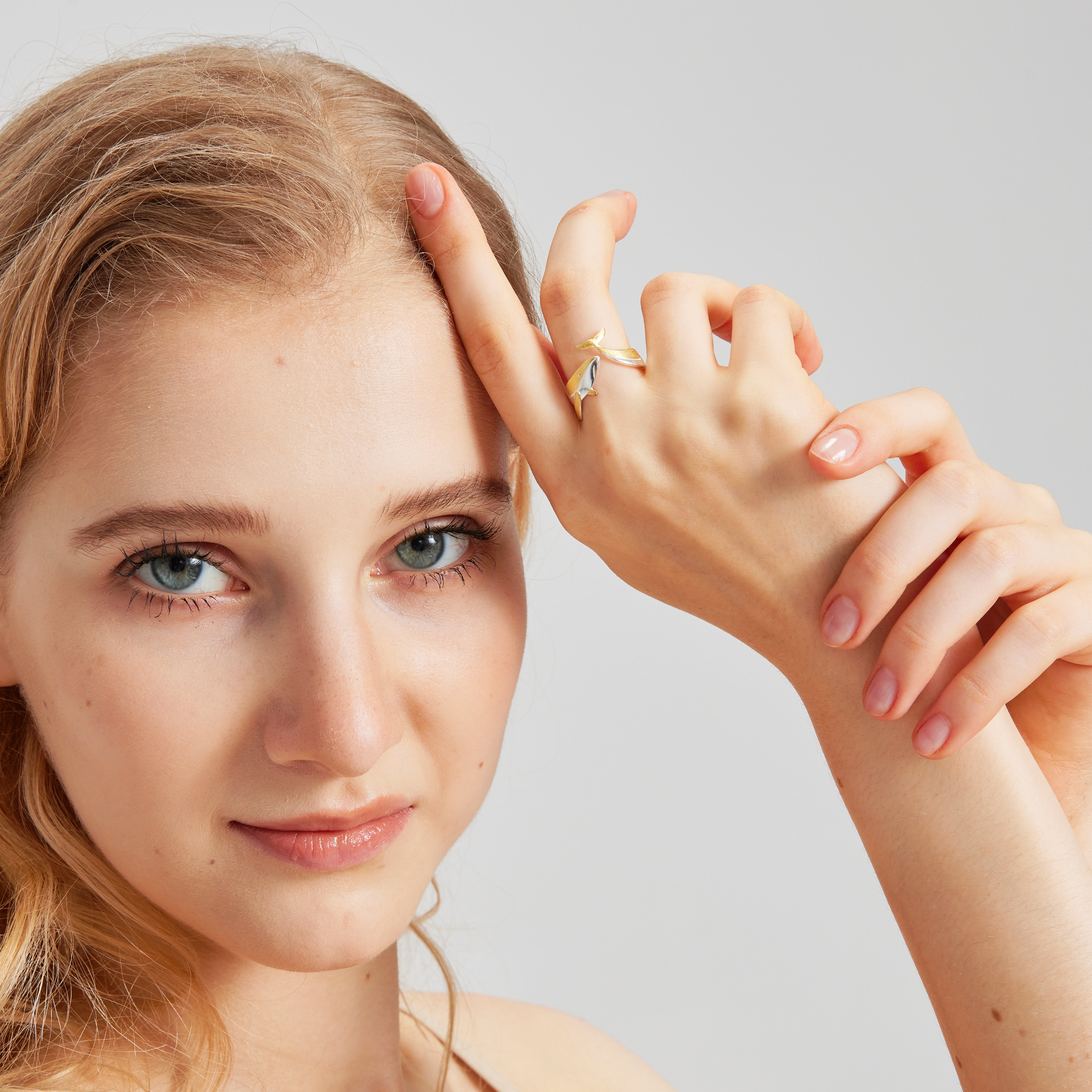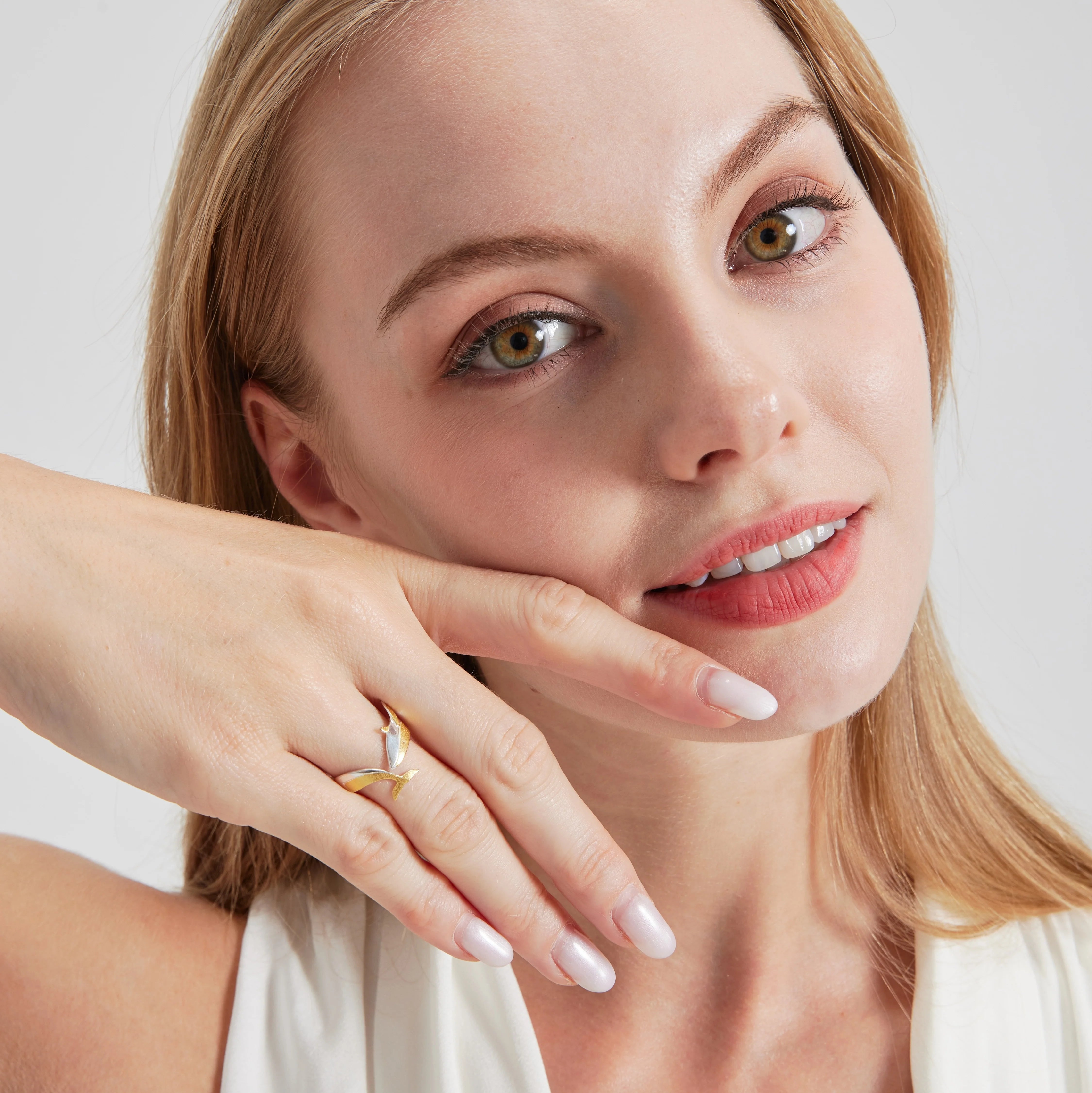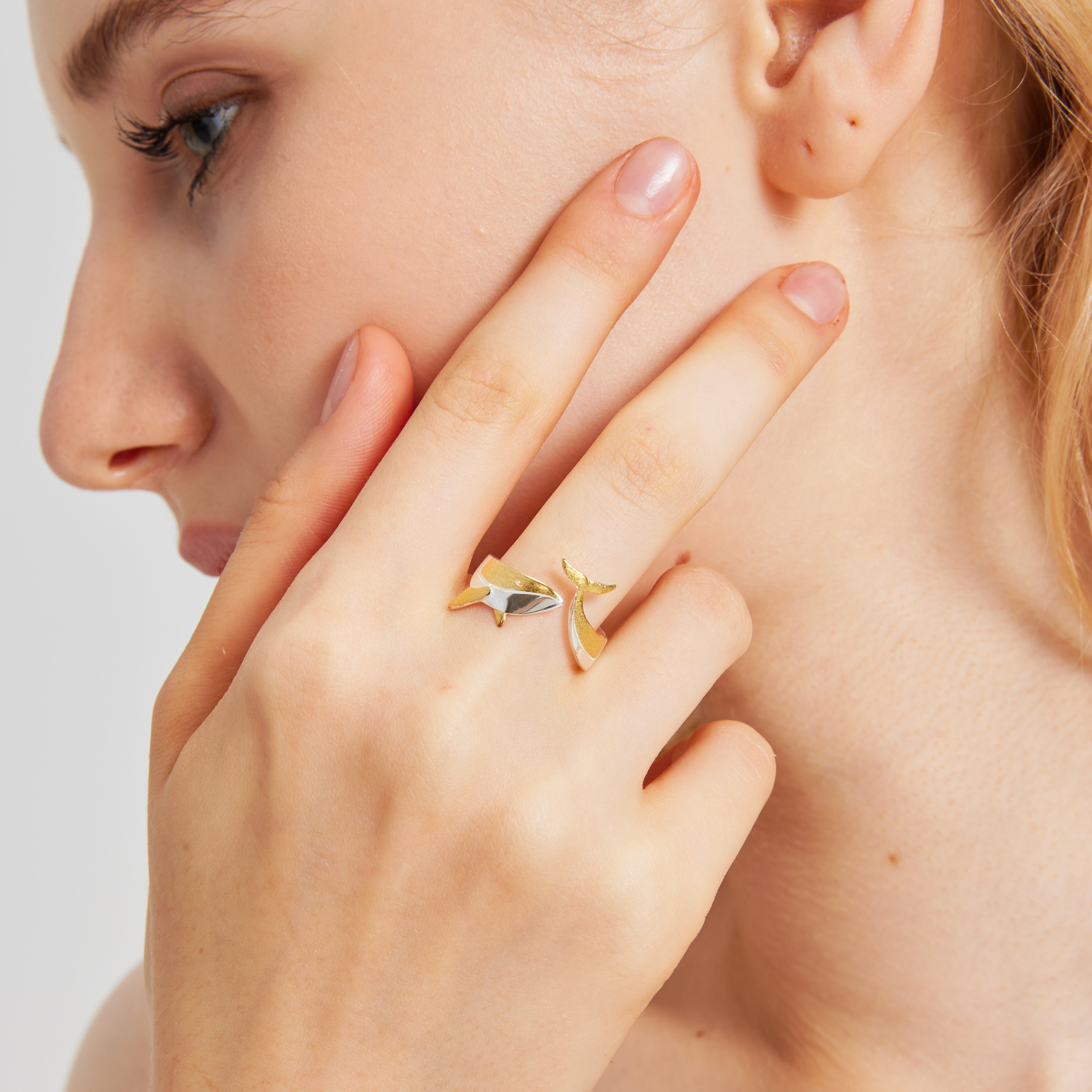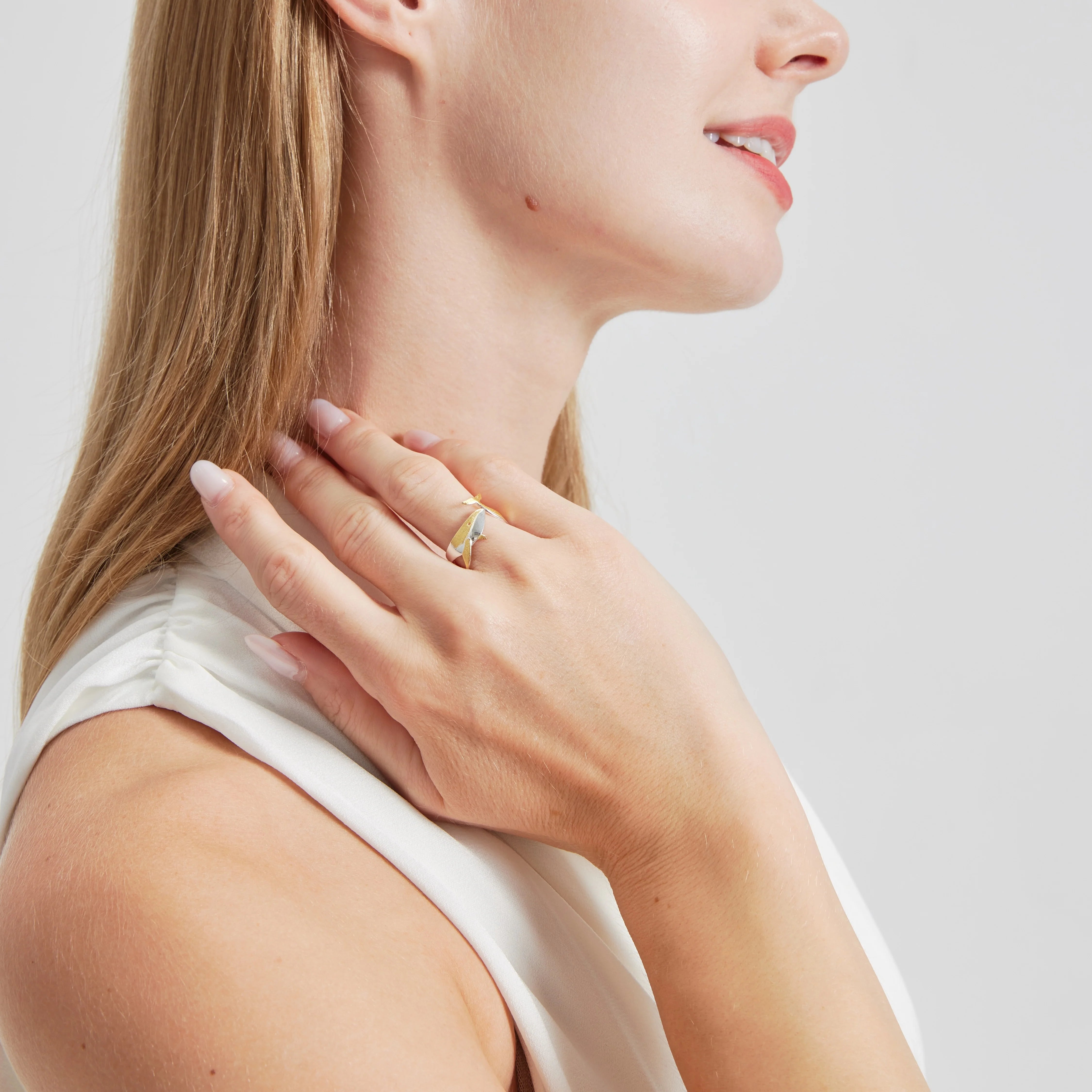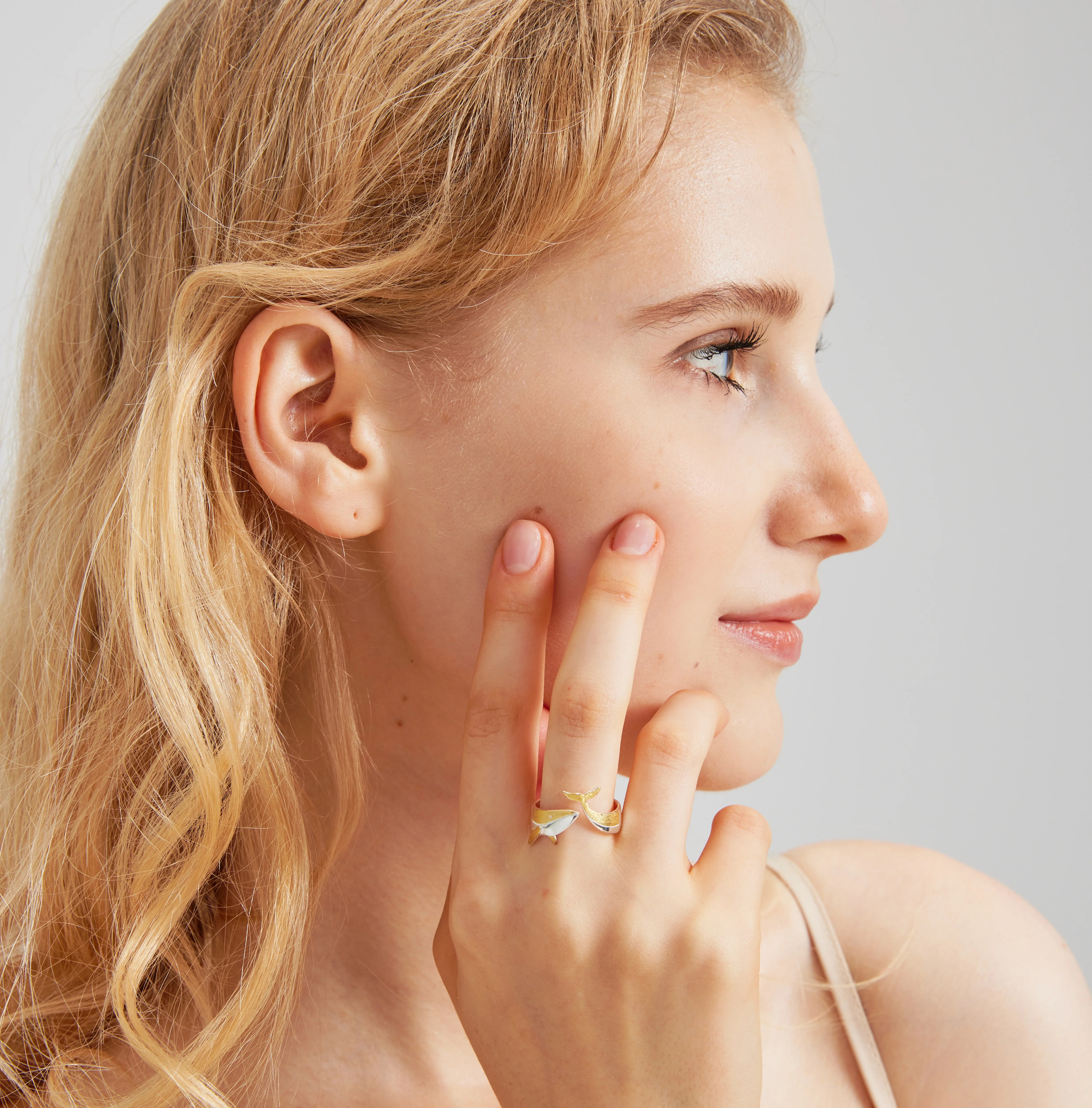 Inspired by the vivid teal waters of Kaikōura, this ring captures the moment our adventure first began — standing at the edge of the coastline, watching a golden tail break through blue-green waves. Handcrafted in solid 925 sterling silver with 18 K gold detailing, The Teal is a tribute to movement, freedom, and the ocean’s ever-changing light.