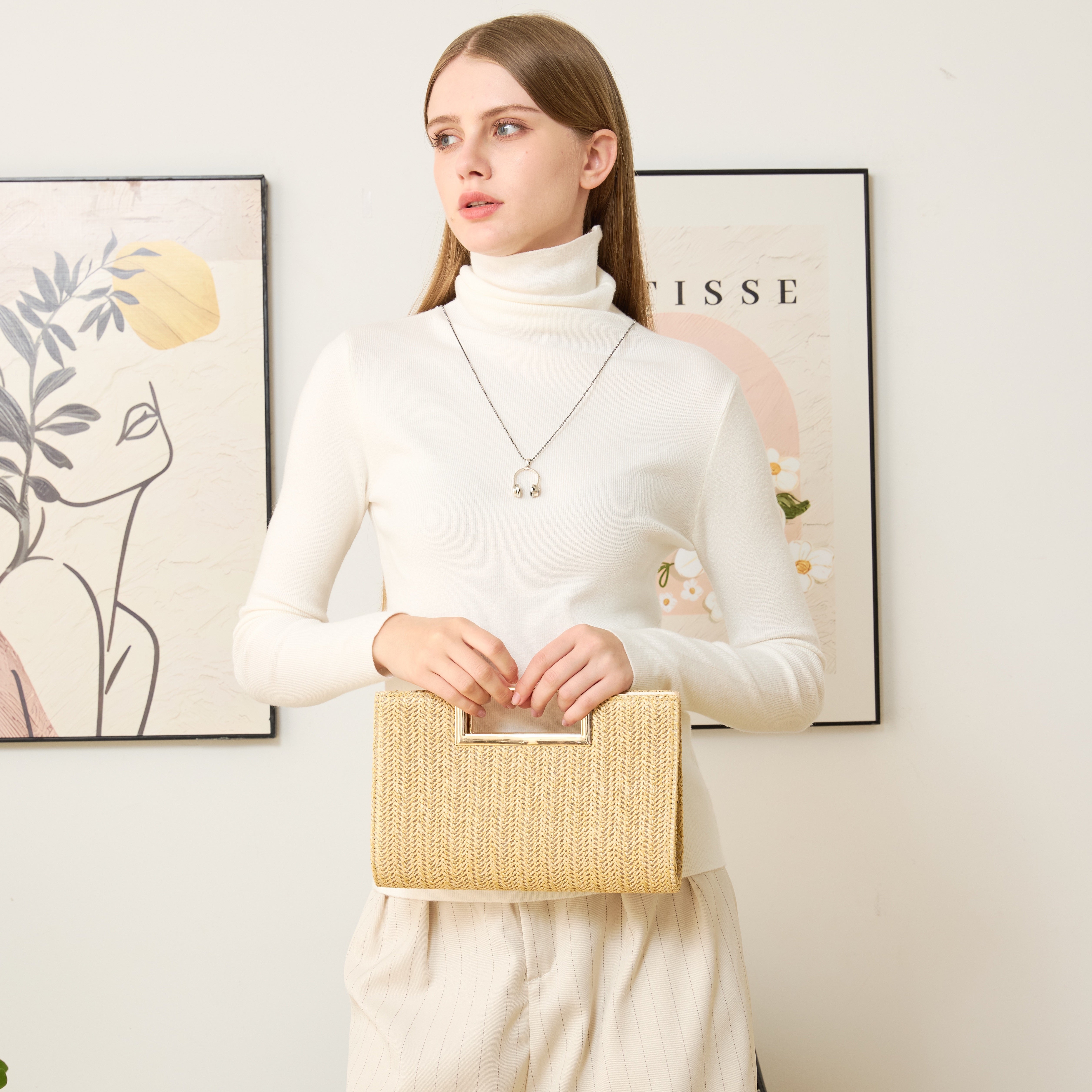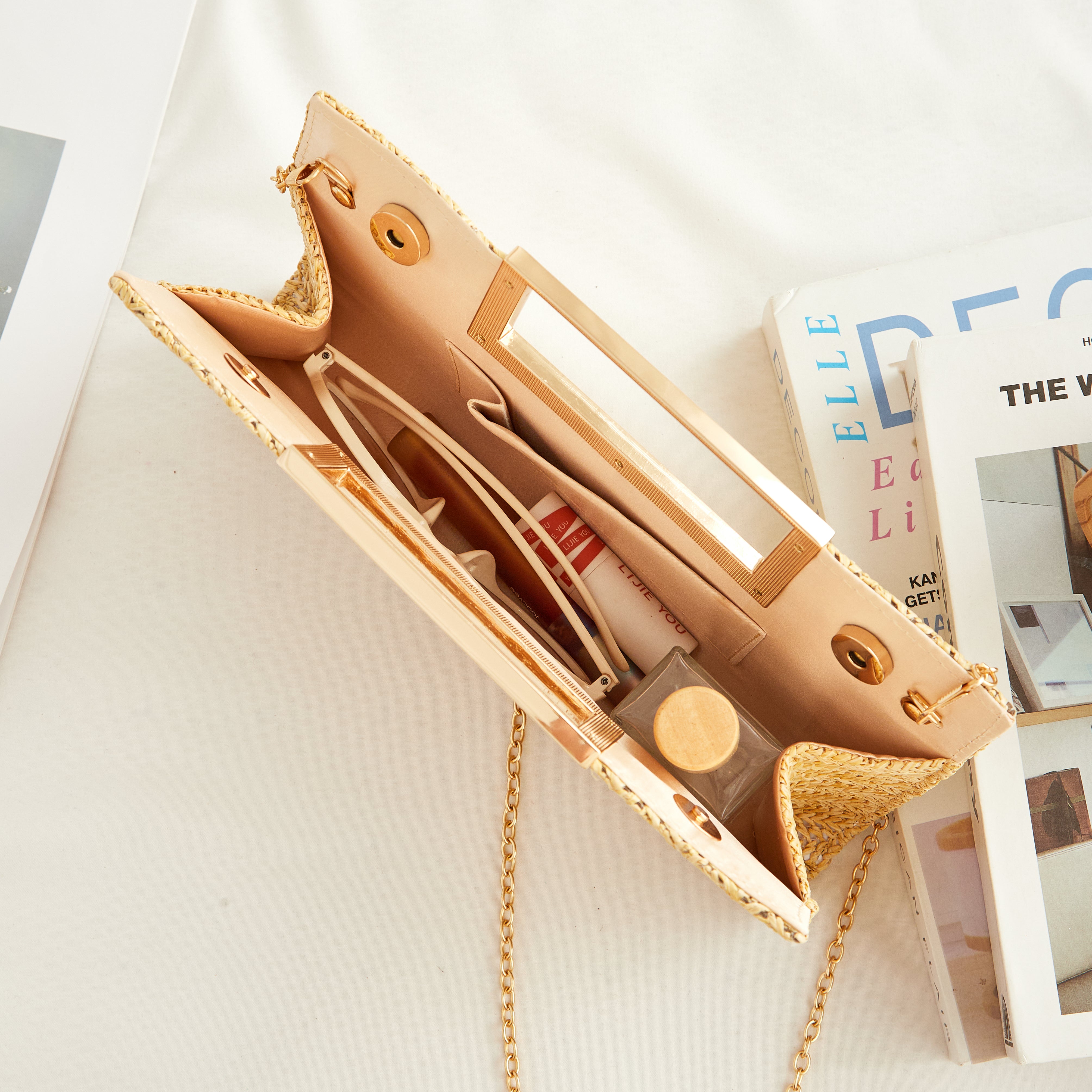 Designed for everything from summer soirées to sunset dinners, its clean silhouette slips easily under your arm while its artisan finish adds a soft, coastal edge to any look.