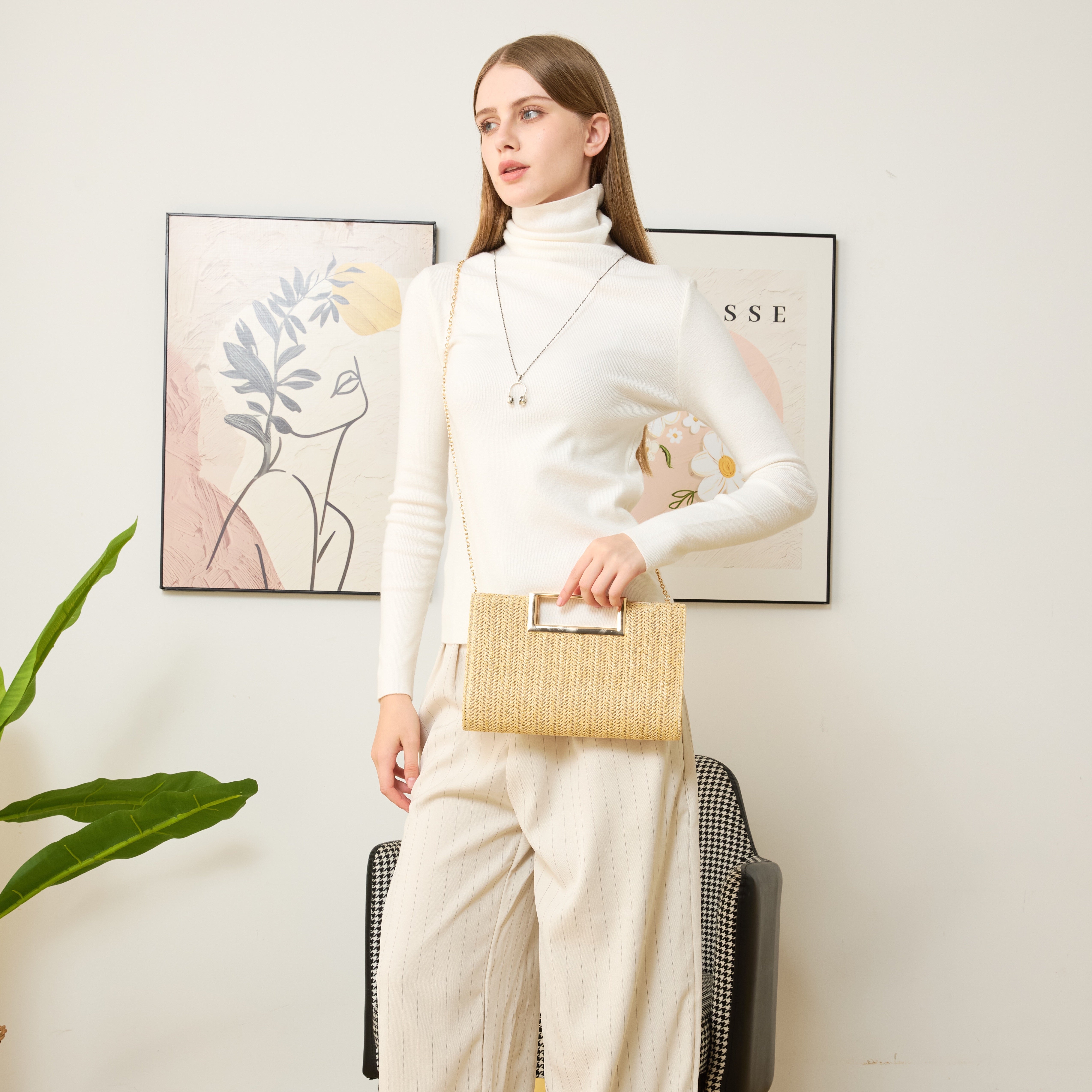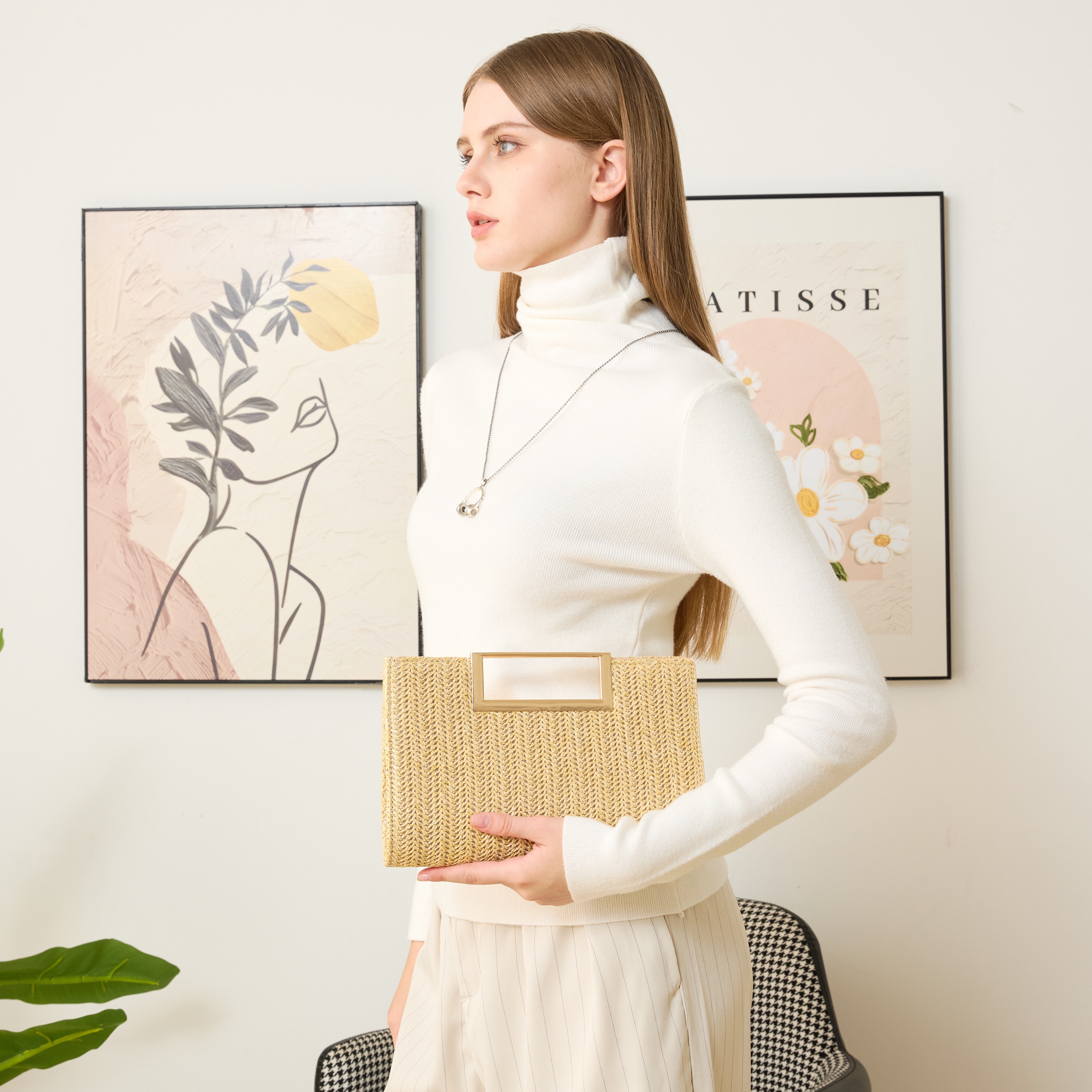 A statement in understatement — the Sage Clutch is where refined minimalism meets handcrafted detail. Woven from natural straw with a whisper of texture and charm, this clutch is subtle at first glance — unforgettable at second.