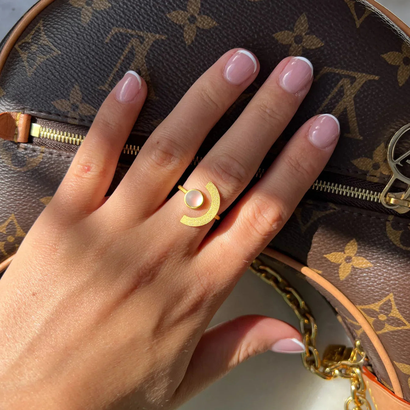 Inspired by the solar deities of ancient civilizations and the warm glow of moonstone, The Solara Ring channels both celestial radiance and grounded strength.