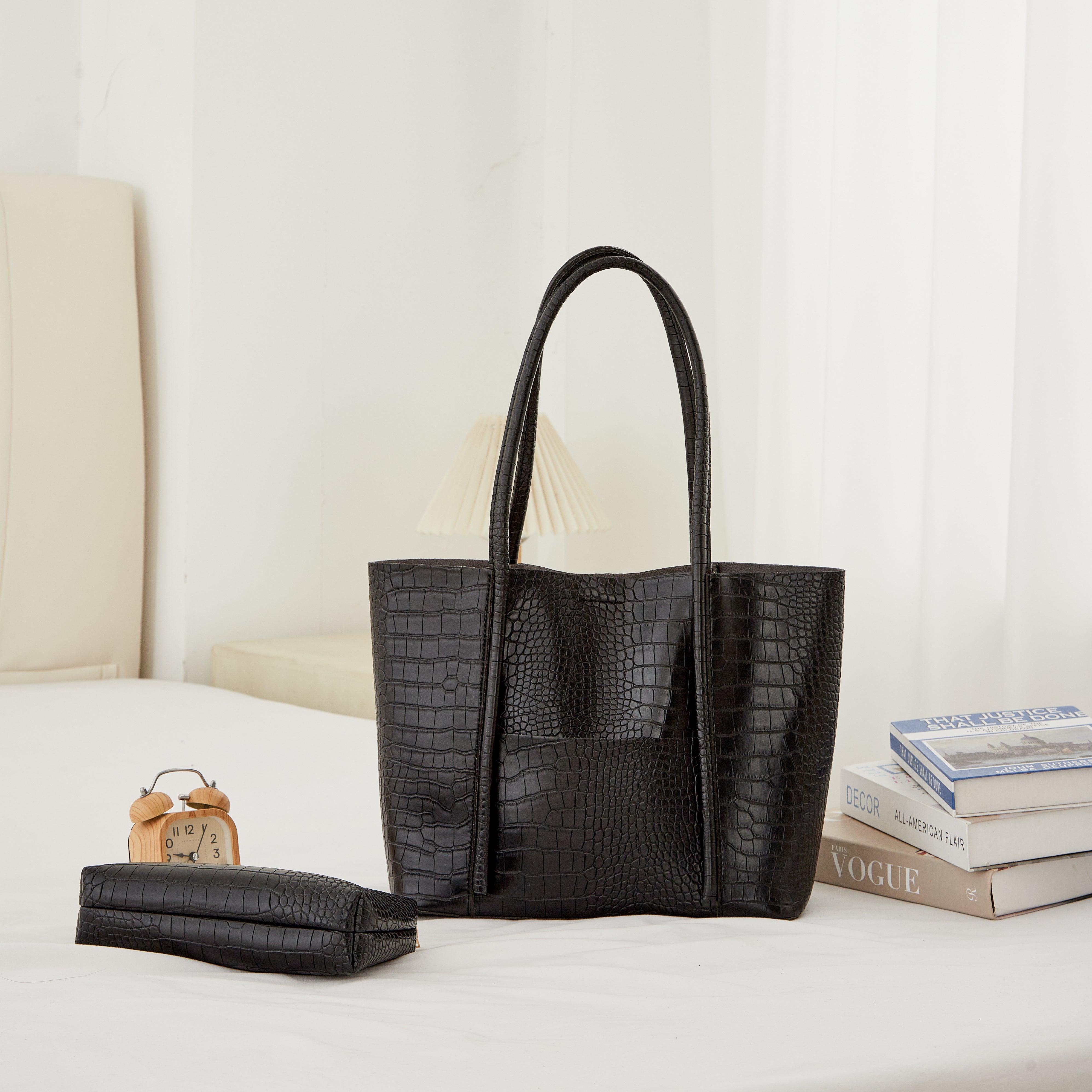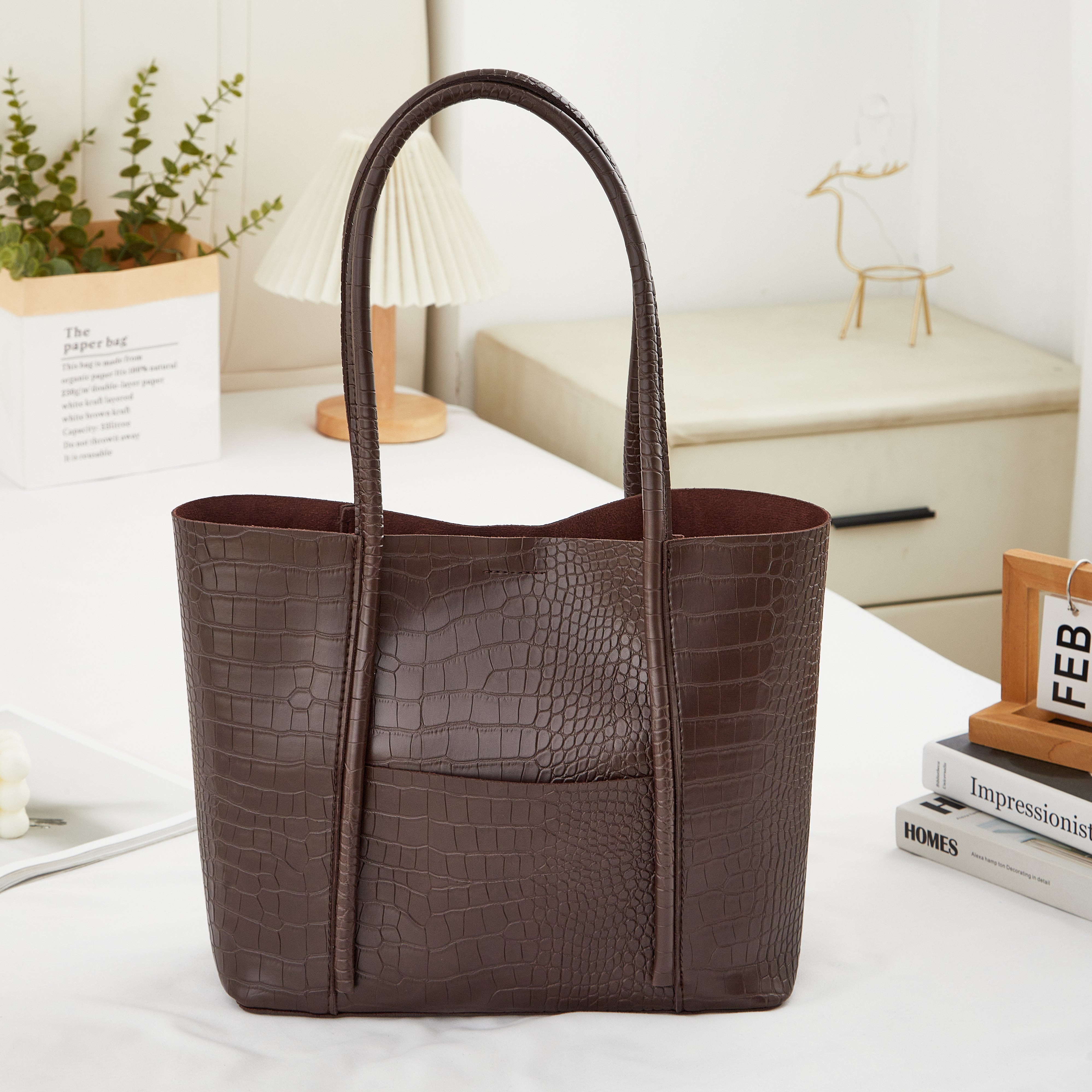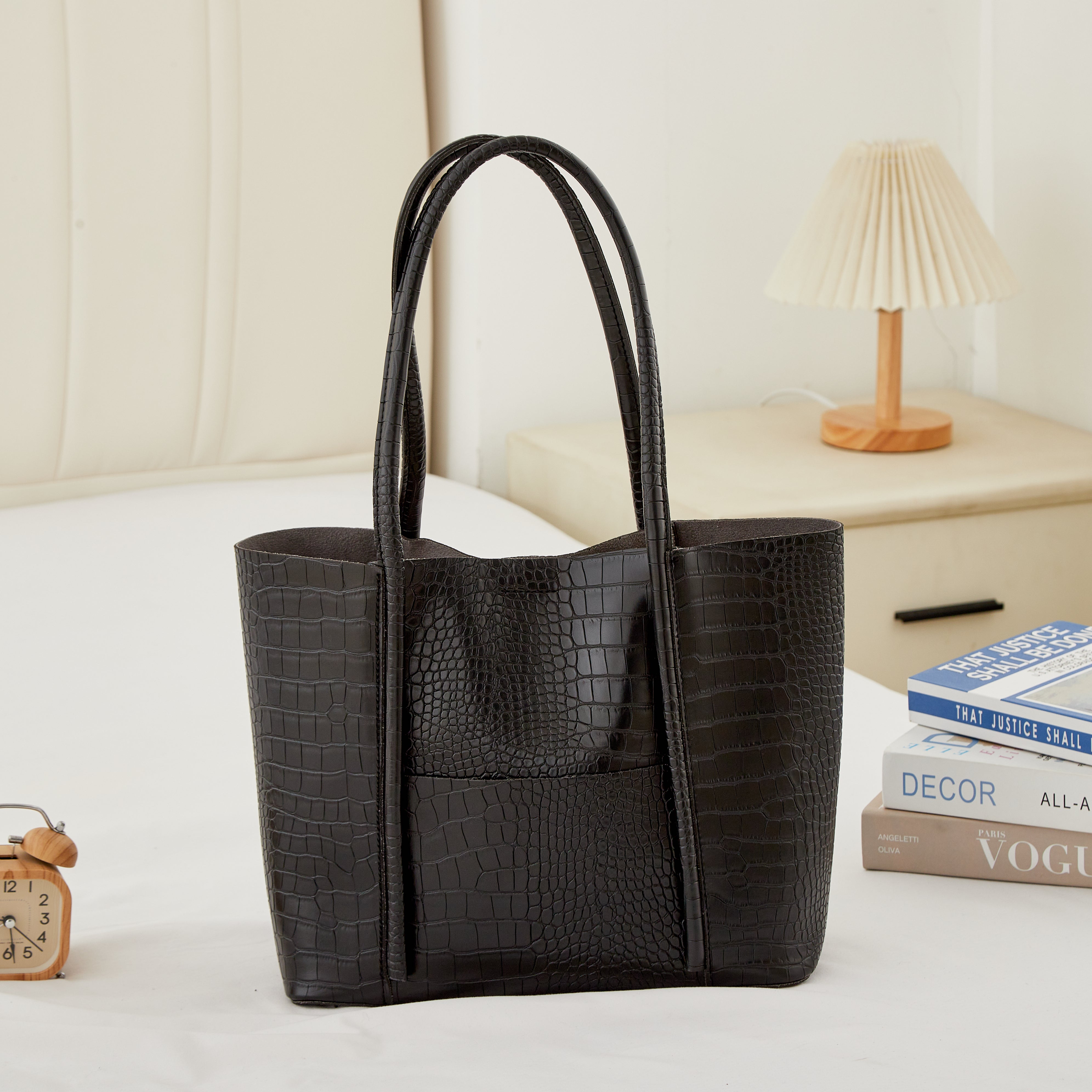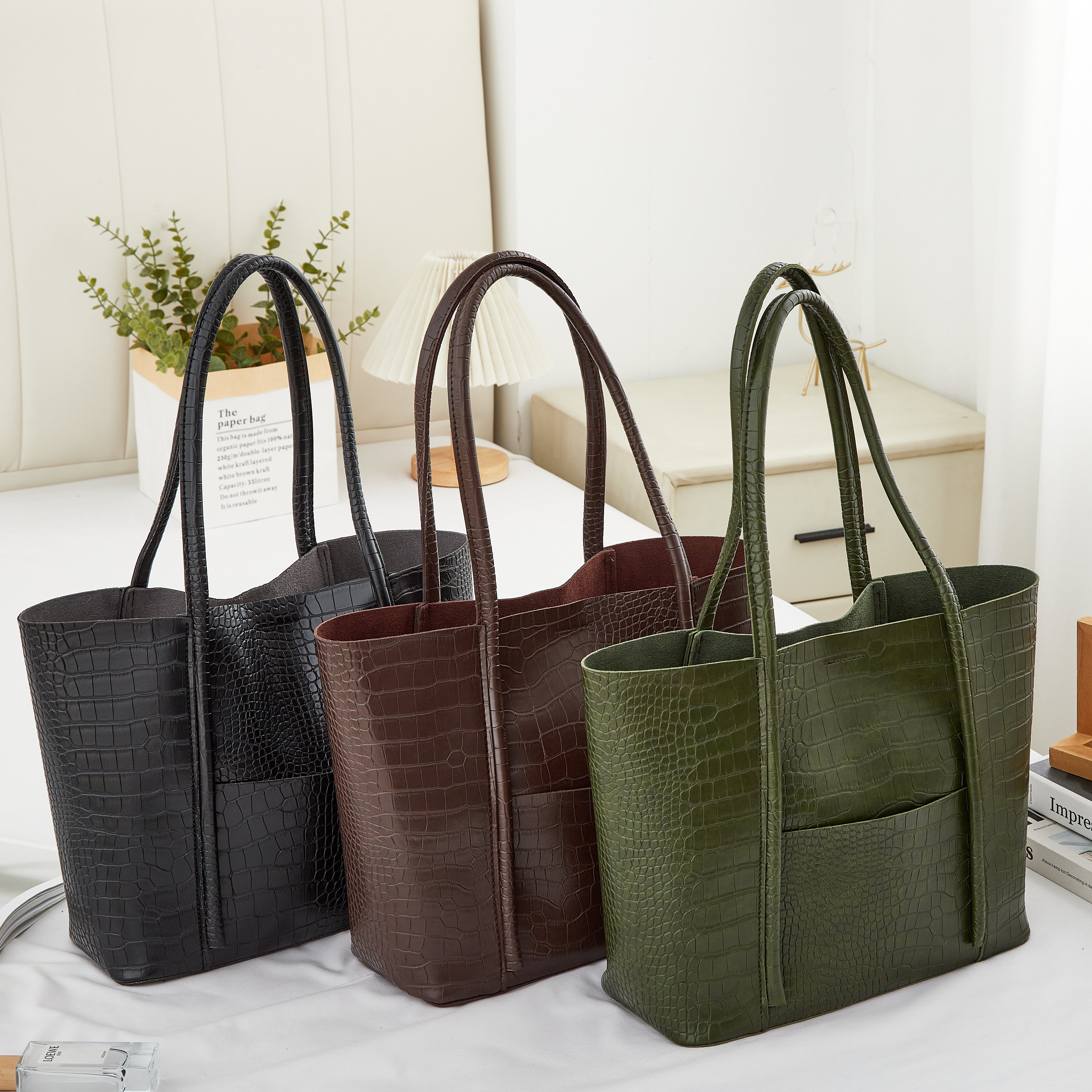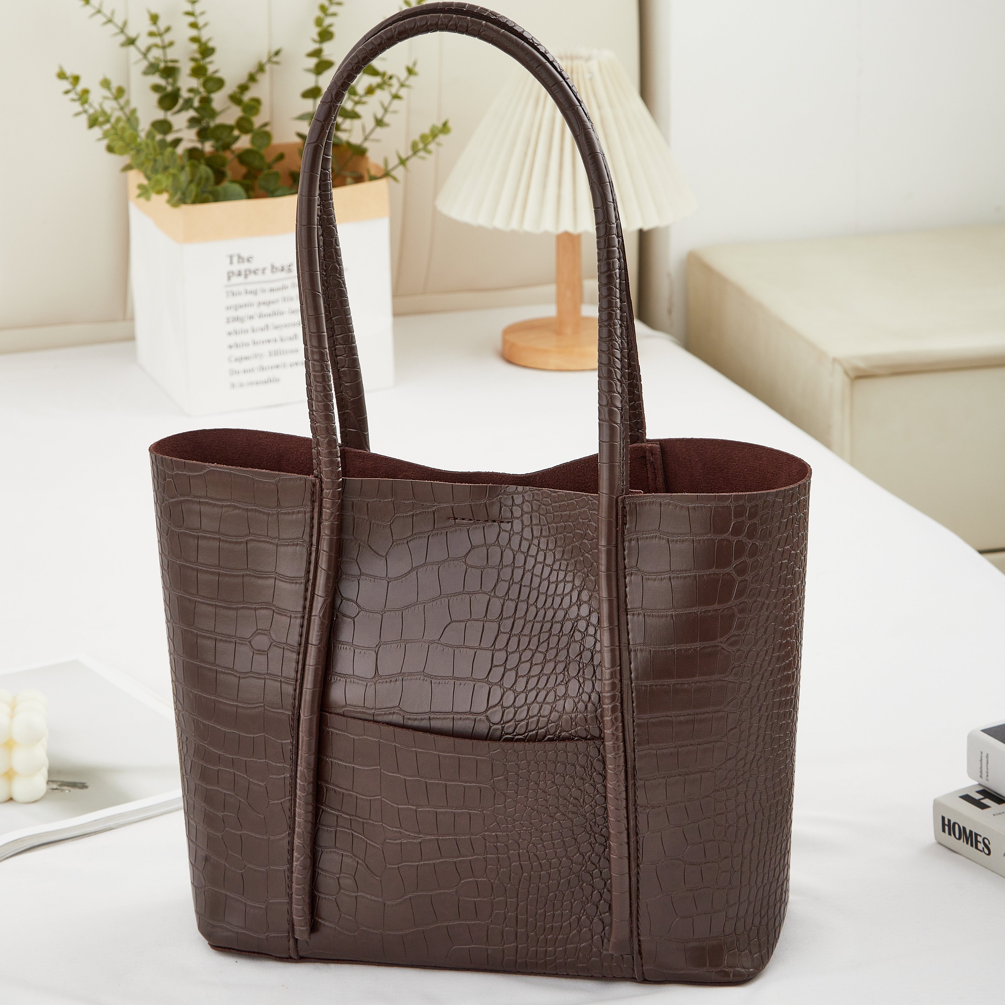 The Belinda Croc Tote brings structured elegance to your everyday routine. Handcrafted with a luxe crocodile-embossed finish, it’s designed to stand out while staying endlessly versatile. The spacious interior fits your daily essentials — from laptop to wallet — without losing its sleek silhouette.