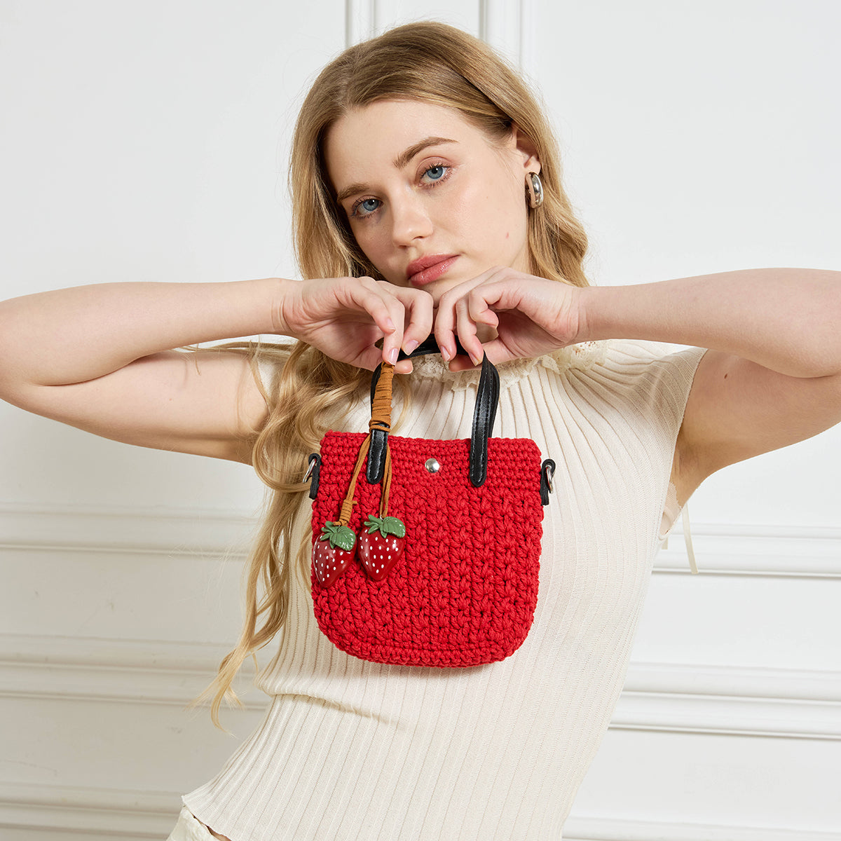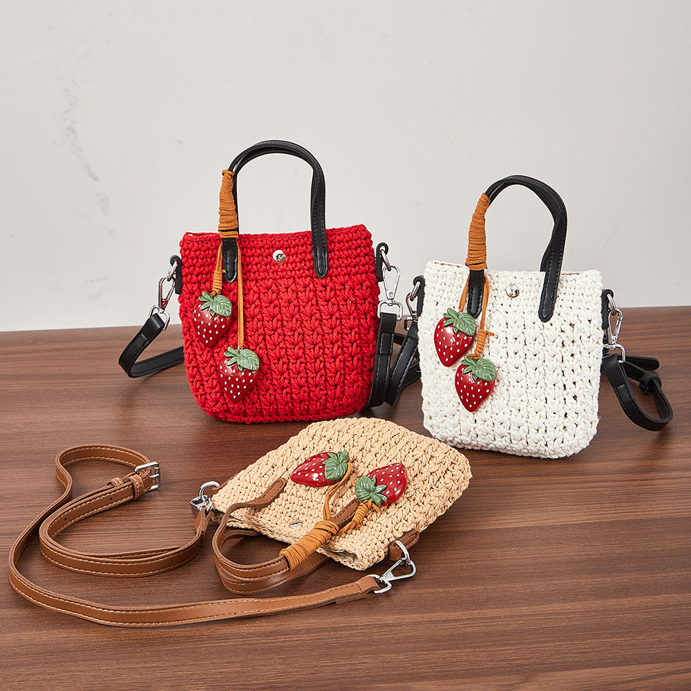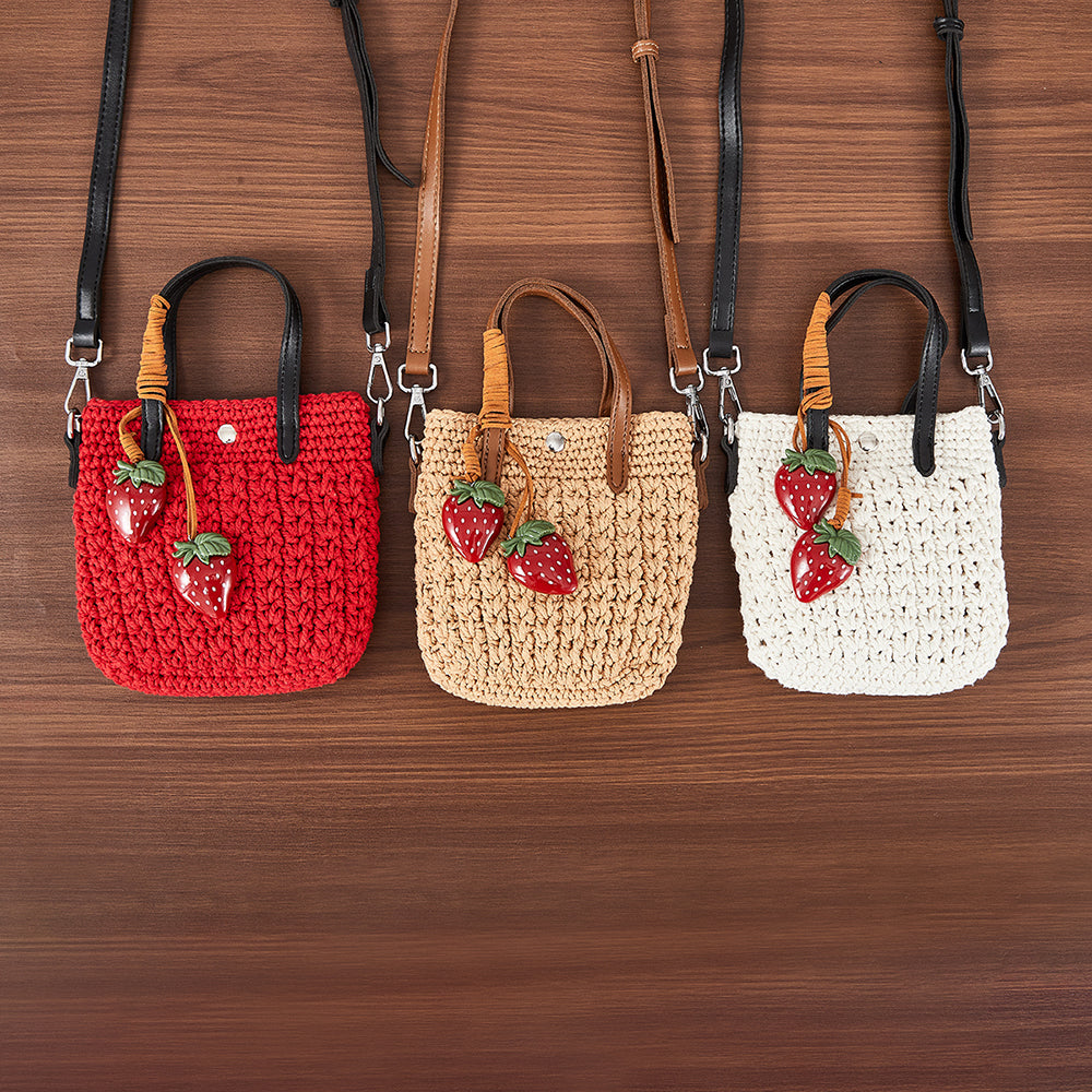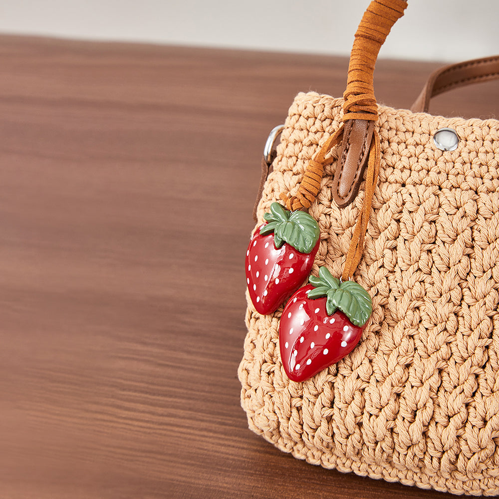 Handcrafted with a soft woven texture and finished with a pair of glossy strawberry charms, Wendy brings a little sweetness to every outfit. Whether you’re heading out for coffee, a weekend market stroll, or a sunny afternoon walk, she’s the perfect companion.